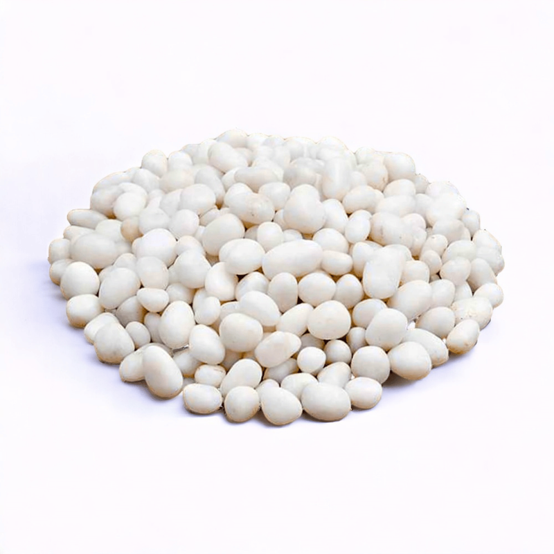 500 gm of polished white pebbles for decorative use in gardens and aquariums.